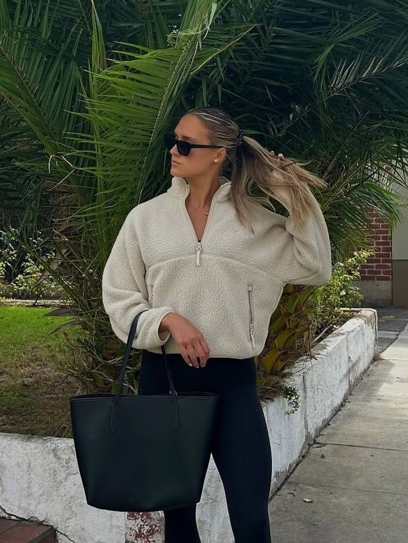 The half-zip fleece that does the heavy lifting in your wardrobe. Soft enough to live in, chic enough that people think you tried. Layer it over your favorite tee, throw it on with leggings, or wear it solo when you need to look like you didn't just roll out of bed (even if you did)